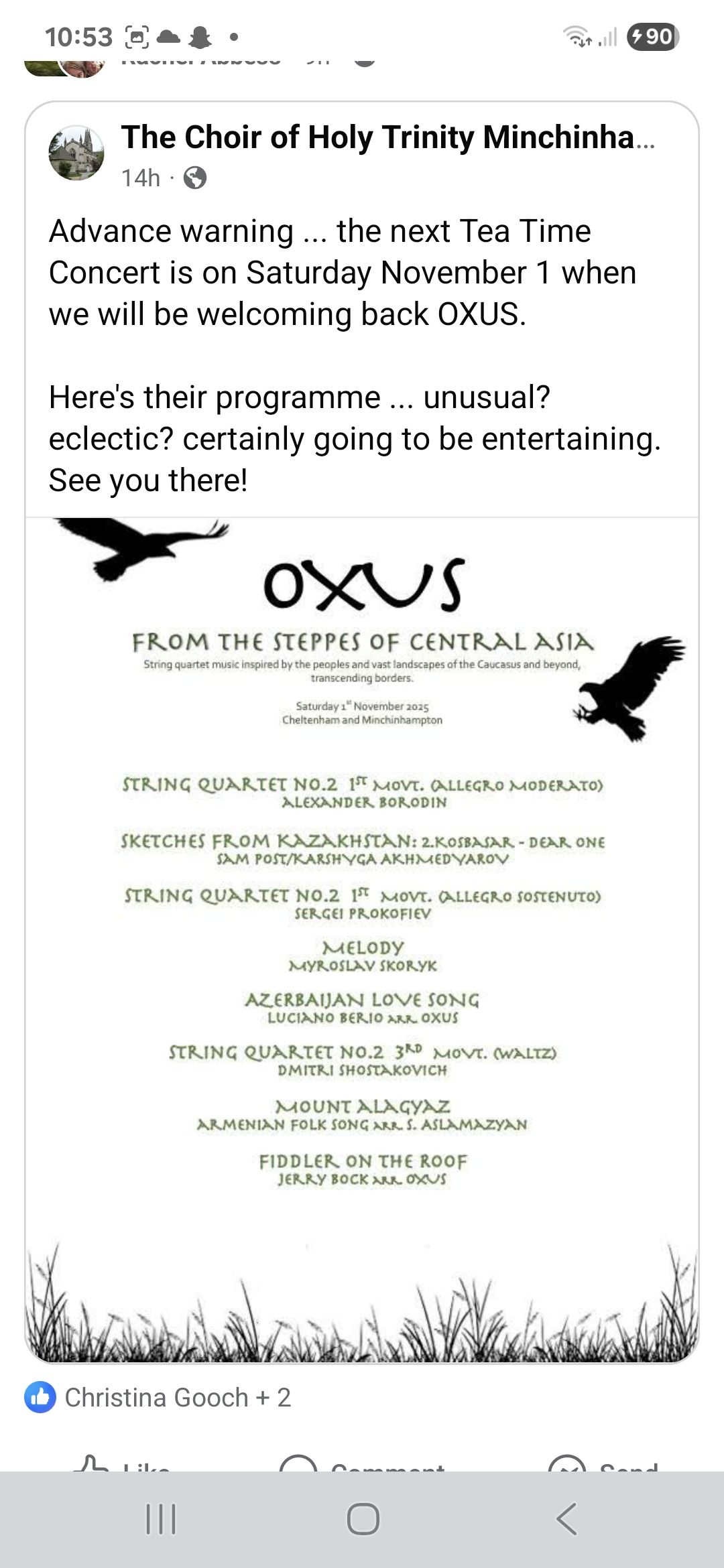 The speaker this month will be Aonghus Gordon OBE. Minchinhampton Ladies’ Lunch Club meets at the Old Lodge on (usually) the third Thursday of the month. There is a delicious lunch (chosen in advance) and a speaker. New members welcome but it is important to contact Biddy Hadfield before attending the lunch. bthadfield@btinternet.com