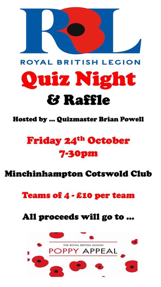 The Royal British Legion Minchinhampton County Supported Branch invites you to their Annual General Meeting being held on Wednesday 15th October, 2025. Starting at 7.30 pm. Non-members are welcome. There will be a raffle. Proceeds to Poppy Appeal. You do not need to have served in the armed forces to attend meetings or… Read More »AGM of the British Legion Minchinhampton